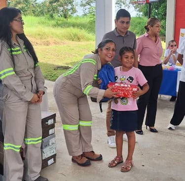 La jornada se llevó a cabo en las comunidades de Lázaro Cárdenas y Pollo de Oro, donde se beneficiaron decenas de niños con la entrega de zapatos escolares y un mini kit escolar que incluyó útiles básicos para su regreso a clases.